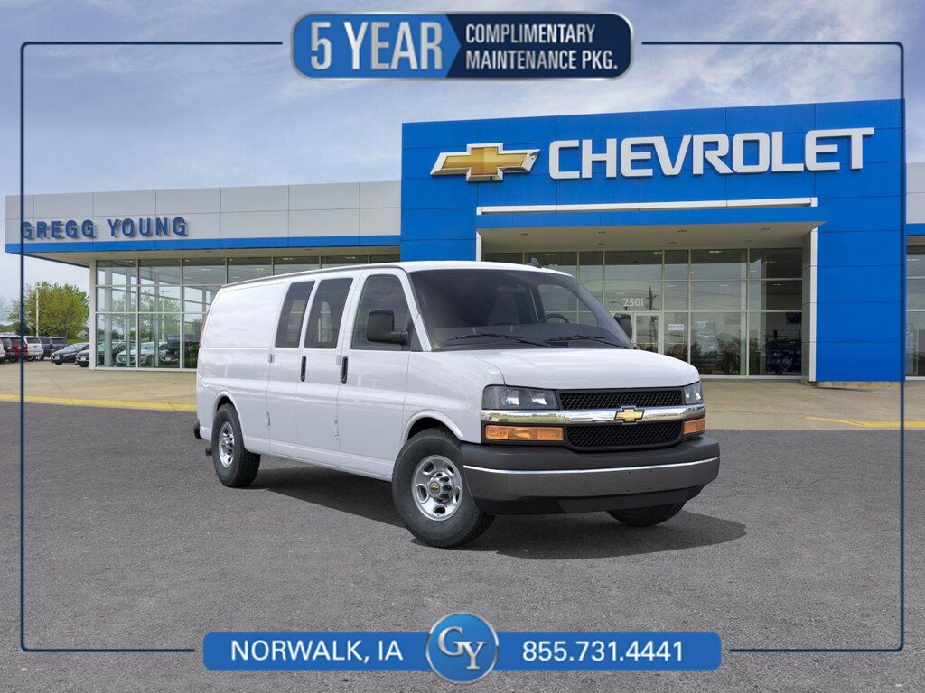 This New 2025 Chevrolet Express Cargo Van , is Summit White in color with an Medium Pewter interior. Stock Number D10254. You can connect with us by calling (877) 566-9371. All purchases include 5 year Complimentary Maintenance Package, valued at over $1,000! What this vehicle includes: Chrome Appearance Package ($355 value)Chrome GrilleFront and Rear Chrome Bumpers with Step-PadDriver Convenience Package ($395 value)Cruise ControlTilt-WheelPreferred Equipment Group 1WT Convenience Cruise control with steering wheel mounted controls. Set it and forget it. Road trips used to be stressful, until cruise control set the pace. Simply set the desired speed using the steering wheel mounted controls and it will maintain that speed without driver intervention. This can help minimize driver fatigue and improve overall fuel economy. Resting your right foot is right at your fingertips thanks to cruise control with steering wheel mounted controls.Powertrain and Mechanical Variable valve timing - Change your output. There are a lot of variables in your drive, so why should your engine always operate the same? With variable valve timing, the engine is efficient at both low and high RPMs, so you get better fuel efficiency, cleaner emissions and improved performance. Variable valve timing provides a better drive, every time. Variable valve timing - Change your output. There are a lot of variables in your drive, so why should your engine always operate the same? With variable valve timing, the engine is efficient at both low and high RPMs, so you get better fuel efficiency, cleaner emissions and improved performance. Variable valve timing provides a better drive, every time.Safety and Security Rear camera - Watching your back! The rear camera helps you see obstacles and hazards you otherwise couldn't by showing enhanced images of what is behind you. The rear camera is an extra set of eyes that's both convenient and safe.Technology and Telematics Selective Internet access - a more focused delivery. Selective internet access allows you to tailor the features for your feed, such as sports scores, local news, or current weather. When it comes to getting what you want, selective internet access is a net gain. BODY, STANDARD, EMISSIONS, FEDERAL REQUIREMENTS, ENGINE, 6.6L V8, TRANSMISSION, 8-SPEED AUTOMATIC, HEAVY-DUTY, ELECTRONICALLY CONTROLLED, REAR AXLE, 3.42 RATIO, DOOR, SWING-OUT PASSENGER-SIDE, 60/40 SPLIT, WHEELS, 4 - 16" X 6.5" (40.6 CM X 16.5 CM) STEEL, TIRE, SPARE LT245/75R16E ALL-SEASON, BLACKWALL, PAINT, SOLID, SUMMIT WHITE, SEATS, FRONT BUCKET WITH CUSTOM CLOTH TRIM, MEDIUM PEWTER, CUSTOM CLOTH SEAT TRIM, SEATING ARRANGEMENT, DRIVER AND FRONT PASSENGER HIGH-BACK BUCKETS,, AUDIO SYSTEM, AM/FM STEREO WITH MP3 PLAYER, DRIVER CONVENIENCE PACKAGE, CHROME APPEARANCE PACKAGE, DIFFERENTIAL, HEAVY-DUTY LOCKING REAR, ALTERNATOR, 150 AMPS, BUMPERS, FRONT AND REAR CHROME WITH STEP-PAD, GRILLE, CHROME, GLASS, FIXED REAR DOORS WINDOWS, GLASS, FIXED REAR SIDE DOOR WINDOWS, GLASS, REAR DOORS AND SIDE CARGO DOORS, WINDOW SECURITY BAR, REAR SIDE DOOR GLASS, LPO, BLUETOOTH PHONE CONNECTION KIT, CONSOLE, ENGINE COVER WITH SWING-OUT STORAGE BIN, FLOOR COVERING DELETE, REAR, FLOOR COVERING, BLACK RUBBERIZED-VINYL, FRONT ONLY, COMPASS, 8-POINT DIGITAL LOCATED IN THE DRIVER INFORMATION CENTER, OUTSIDE TEMPERATURE DISPLAY, REMOTE KEYLESS ENTRY, CRUISE CONTROL, THEFT ALARM NOTIFICATION, LIGHTING, AUXILIARY, ONSTAR SECURITY - 36 MONTHS OF SERVICE, FUEL FITTING, FOR FUEL LINE TAKE-OFF Come on in to Gregg Young Chevy Norwalk today at 2501 Sunset Drive Norwalk IA 50211 or call (877) 566-9371 to schedule a test drive! What sets Gregg Young Chevrolet of Norwalk apart? Family-run leadership Gregg Young and his children actively manage the dealership, blending experience with a personal touch. Community commitment supporting local charities and initiatives is at the heart of everything we do. Top-volume Chevrolet dealer one of the most trusted destinations for Chevrolet v