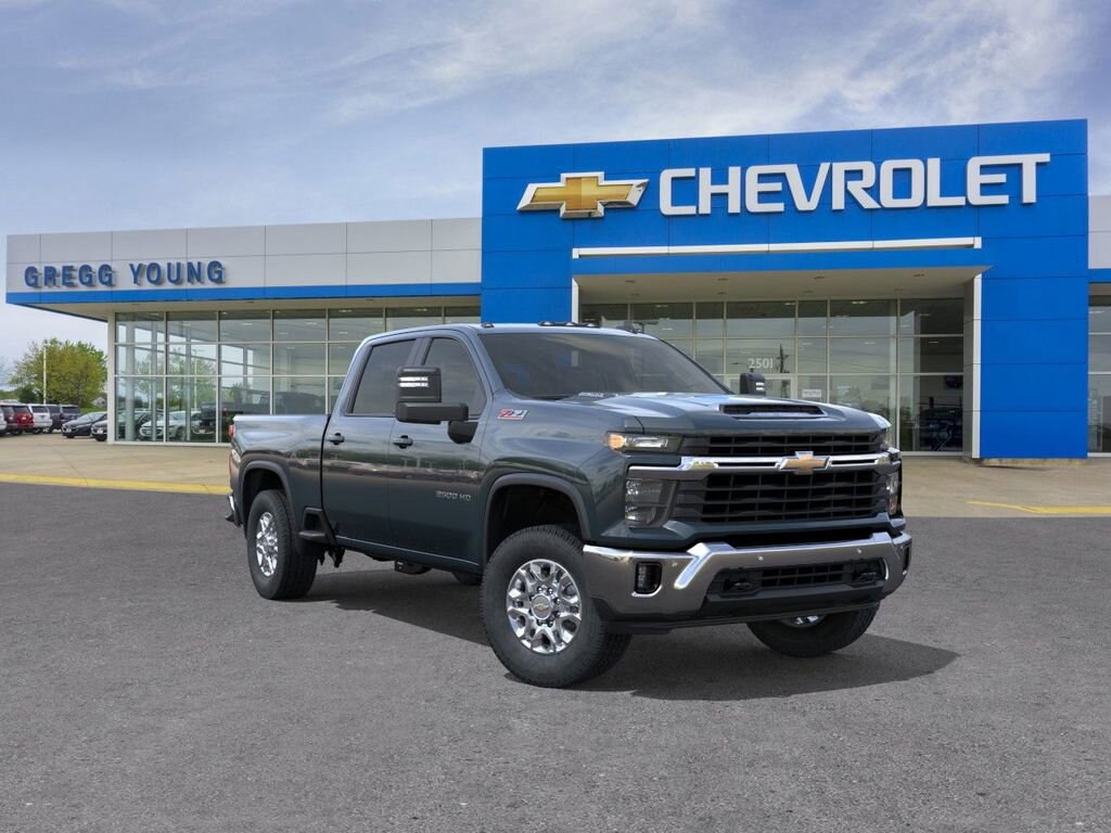 Rough and ready, our 2026 Chevrolet Silverado 2500HD LT Crew Cab 4X4 with the Convenience Pack rides with terrific truck appeal in Cypress Gray! Motivated by a 6.6 Liter V8 offering 401hp to a 10 Speed Allison Automatic transmission for muscular towing and hauling capabilities. An HD suspension and auto-locking rear differential help you handle hard work without breaking a sweat, and this Four Wheel Drive truck stands strong with an impressive range of standard features. Highlights from our Convenience Pack add LED fog lamps/cargo-bed lighting to chrome bumpers, alloy wheels, power trailering mirrors, an EZ lift and lower tailgate, a Black Chevytec Spray-on Bedliner, side/rear bed steps, and a trailer hitch.