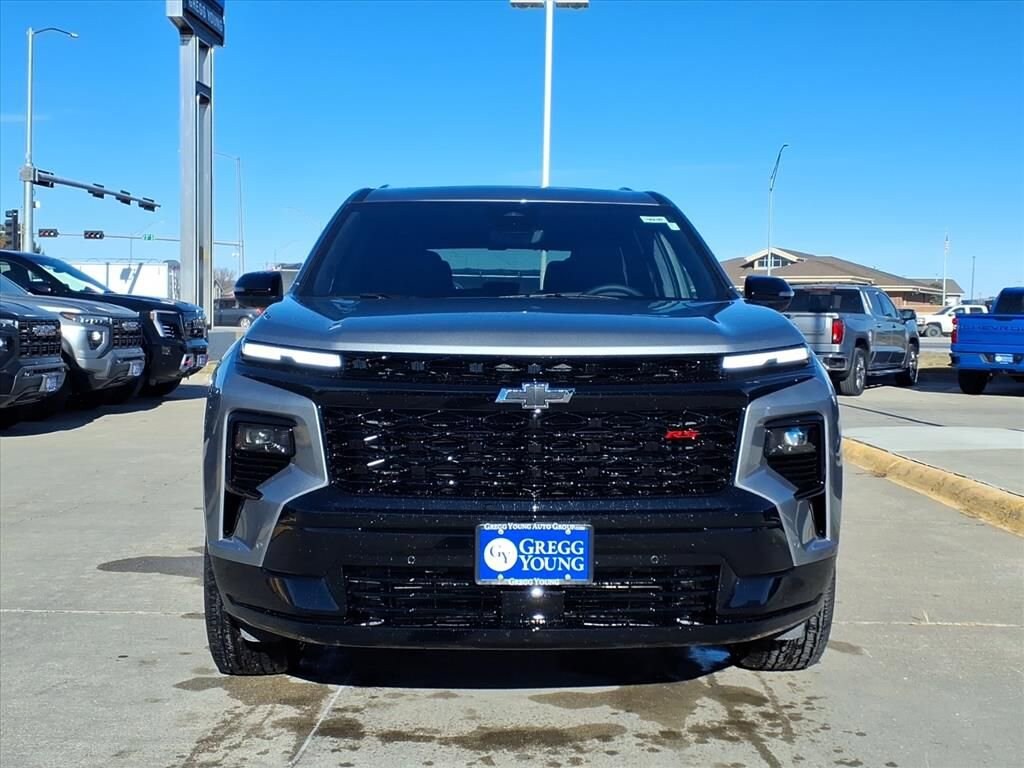Commanding attention, our 2026 Chevrolet Traverse RS AWD in Sterling Gray Metallic shows off bold design cues, athletic details, and confident performance that turn heads everywhere you go. Powered by a TurboCharged 2.5 Liter 4 Cylinder delivering 328hp to an 8 Speed Automatic transmission for family-friendly performance. This All Wheel Drive SUV also rewards you with comfortable handling for your active days, and it returns nearly 27mpg on the highway with street-smart style. Check out our Traverse for LED lighting, high-gloss black accents, 22-inch wheels, and the convenience of a hands-free liftgate, factory-installed hitch, a sunroof, and roof rails.