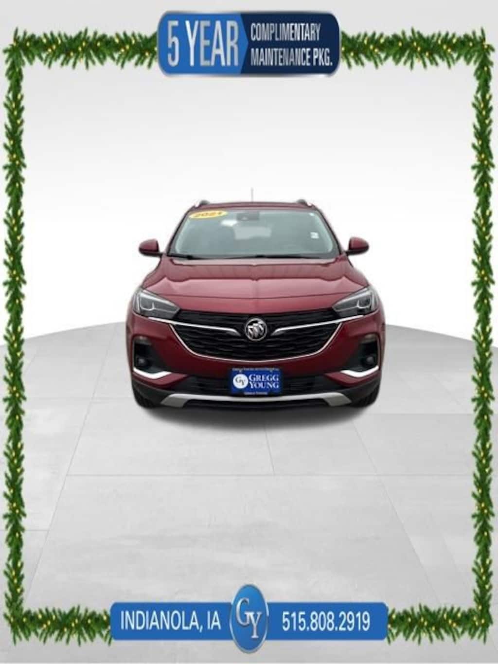 Drive our **2021**Buick**Encore GX**Essence**AWD**Buick Experience Package**Sunroof** and enjoy pure premium versatility plus a striking Chili Red Metallic design! Motivated by a TurboCharged 1.3 Liter EcoTec 3 Cylinder supplying 155hp connected to a CVT so you can move with confidence. As you go, this All Wheel Drive SUV also rewards you with nimble handling and the ability to score nearly 29mpg on the highway. The distinctive look of our Encore GX means you're ready to roll in style with LED lighting, fog lamps, heated power mirrors, roof rails, bold Carbon Black Metallic body-side moldings, and our package's panoramic sunroof and exclusive wheels.