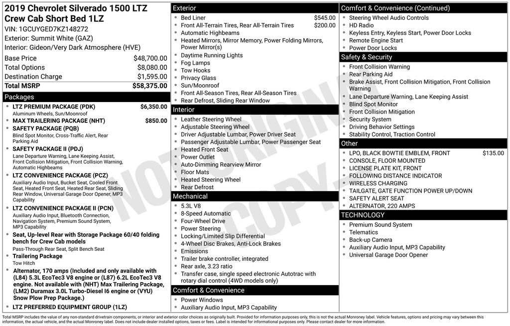 Summit White 2019 Chevrolet Silverado 1500 LTZ 4WD 8-Speed Automatic EcoTec3 5.3L V8