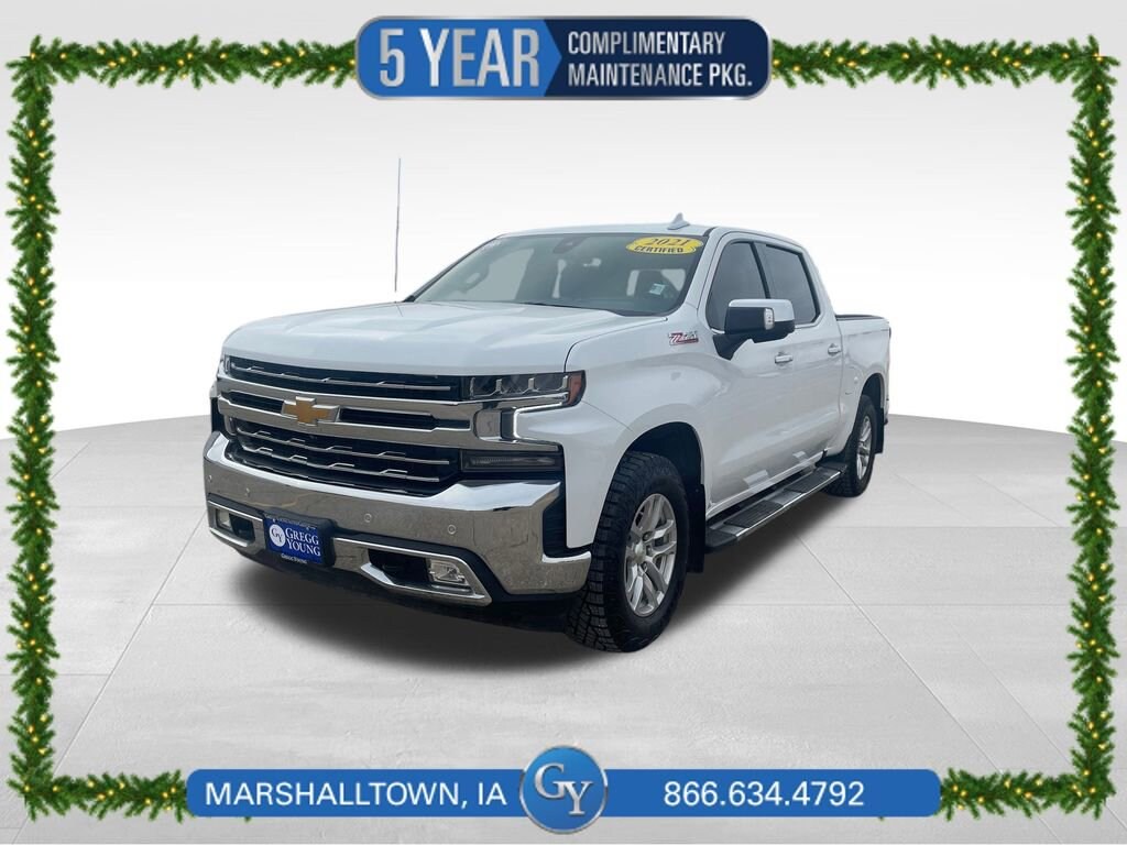 Packed with premium features, our **Accident Free**2021**Chevrolet**Silverado 1500**LTZ**Crew Cab**4X4**Convenience II Package**Z71 Off-Road Package** is a powerful machine that looks great in Summit White! Motivated by a 5.3 Liter EcoTec3 V8 delivering 355hp to an 8 Speed Automatic transmission for top-notch capability. This Four Wheel Drive truck also adds an Advanced Trailering System for easier towing and returns nearly 22mpg on the highway. Our Silverado is impressively refined with LED lighting, fog lamps, chrome accents, a power up/down tailgate, running boards, a tonneau cover, a 120V outlet, and 20-inch alloy wheels.Our LTZ cabin lets you live it up even when you get down to work thanks to the Convenience II Package's heated/ventilated leather power front and heated rear seats, a heated leather steering wheel, dual-zone automatic climate control, remote start, a power rear window, and upscale technology that helps you command each day. An 8-inch color touchscreen, WiFi compatibility, Android Auto®/Apple CarPlay®, Bluetooth®, wireless charging, smartphone projection, and a Bose audio system lead the way. You can appreciate the smart storage solutions, too!Building on the foundation of a high-strength steel frame, Chevrolet safeguards your driving with an HD rearview camera, parking sensors, a blind-spot monitor, rear cross-traffic alert, lane-change alert, ABS, airbags, and more. It's no wonder so many truck experts love being in our legendary Silverado 1500 LTZ! Save this Page and Call for Availability. We Know You Will Enjoy Your Test Drive Towards Ownership!