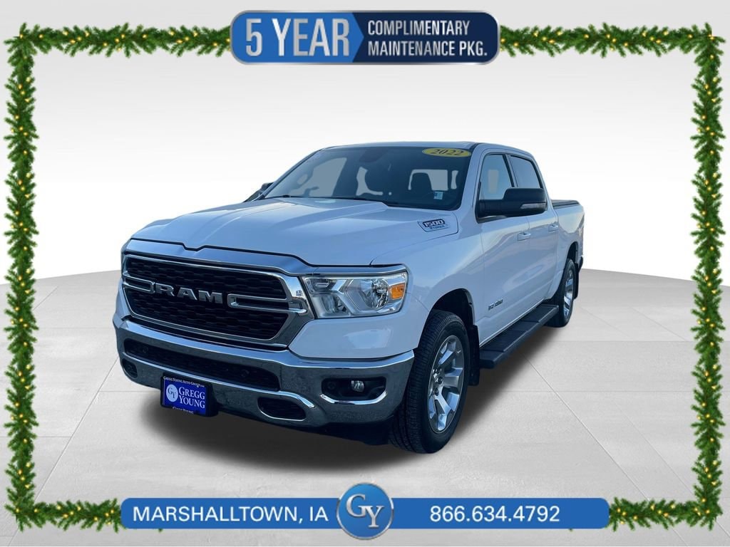 Our **2022**RAM 1500**Big Horn/Lone Star**Crew Cab**4X4**Level 2 Package**Heated Steering Wheel** is as functional as it is stylish in Bright White! Powered by a 3.6 Liter eTorque Pentastar V6 offering 305hp tethered to an 8 Speed Automatic transmission to meet your towing and hauling needs. This Four Wheel Drive truck also boasts heavy-duty shocks to help you get more done with fewer hassles, and it returns nearly 24mpg on the highway. Rugged good looks raise the bar even higher for our RAM 1500, making a bold impression with quad halogen headlights, fog lamps, a chrome grille, bright bumpers, alloy wheels, and our package for premium mirrors and a Class IV receiver hitch.Better days come into view when you're in our Big Horn/Lone Star cabin. It's a smart setup that adds our Level 2 Pack for heated front seats, eight-way power for the driver, a heated leather steering wheel, dual-zone automatic climate control, power-adjustable pedals, a power sliding rear window, remote start, a 7-inch driver display, and Uconnect® 5 with an 8.4-inch touchscreen, Android Auto®/Apple CarPlay®, WiFi compatibility, and Bluetooth®. Tune in to your favorite soundtrack with standard six-speaker audio.RAM safeguards your travels with a backup camera, electronic stability/traction control, hill-start assist, tire-pressure monitoring, trailer-sway damping, and our package's parking sensors. You're ready to rock when you're driving our RAM 1500 Big Horn/Lone Star! Save this Page and Call for Availability. We Know You Will Enjoy Your Test Drive Towards Ownership!